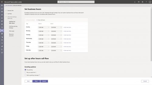 Once you have complete these screens that is it. Click submit and you have now set-up resource accounts, call queues and an auto attendant on Microsoft Teams.