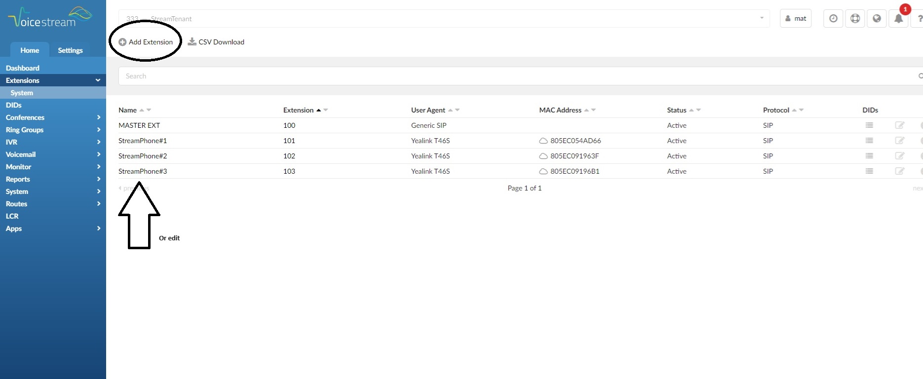 How to add or edit an Extension to your VoiceStream Hosted Communications Platform