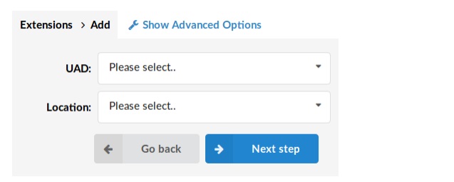 UAD/Phone type and extension location need to be provided. In a second step, basic UAD/Phone